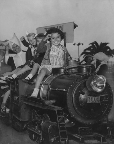 Children ride a miniature train during a 1950 fundraising event hosted by the Los Angeles Orphanage Guild, later named Maryvale, Los Angeles County’s oldest children’s service organization founded in 1856.